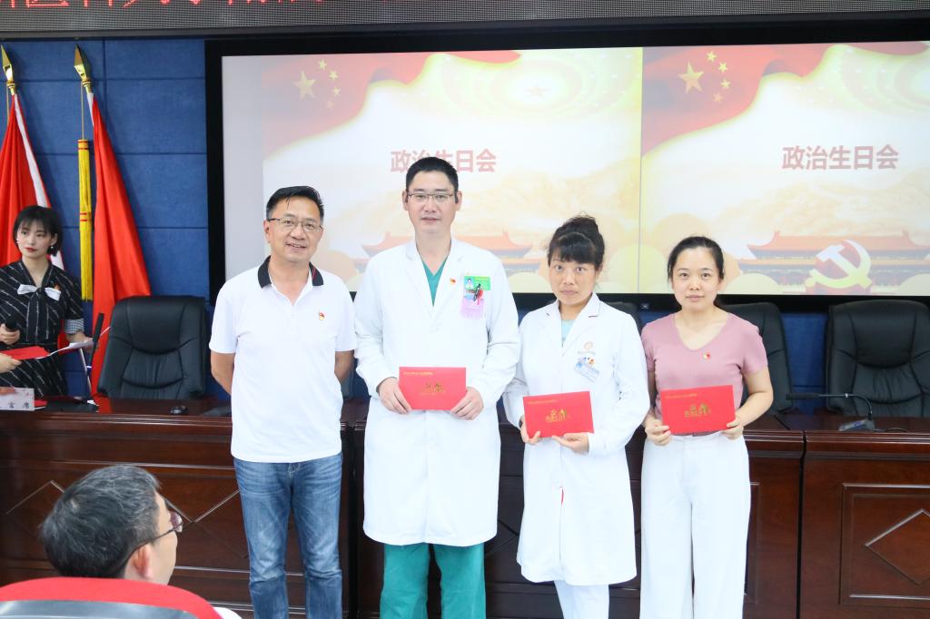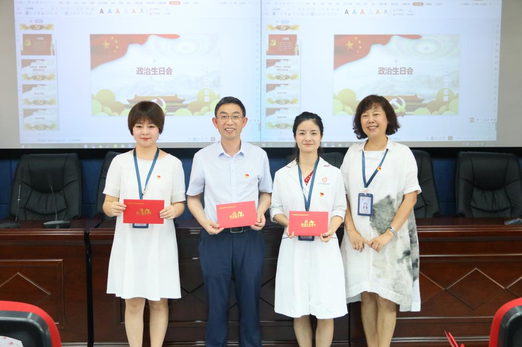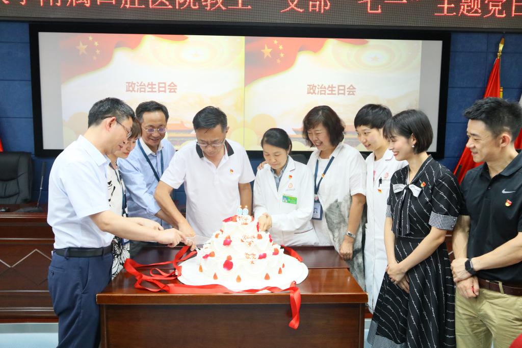 2020年,因新冠肺炎疫情的突发影响了公司党委给党员同志过党政生日的节奏,但却没有影响我们共产党人的信念和不断前行的决心,全体党员在公司党委的带领下踏实勤恳,在完成本职工作的同时积极参与预检分诊、巡查巡检等院内调配工作,为院感防控默默付出,做出了党员应有的样子。活动现场,全体人员为中国共产党99岁诞辰齐唱生日快乐歌,并在“祝福板”上写下祝福语和希望,用真诚的语言祝福祖国母亲越来越好,发展更加繁荣昌盛!并借此机会,为全院2月至7月入党的党员过政治生日,分批次由公司党委书记张军梅,党委副书记、经理马洪,副经理王永,党委副书记钱禾送上政治生日贺卡,给予祝愿和赞扬,肯定他们的付出与努力,希望全公司党员不负入党初心,敢于承担责任,都能做敢想敢拼敢争优的中共党员。随后,公司党政领导共同切开生日蛋糕,送给与会人员。
