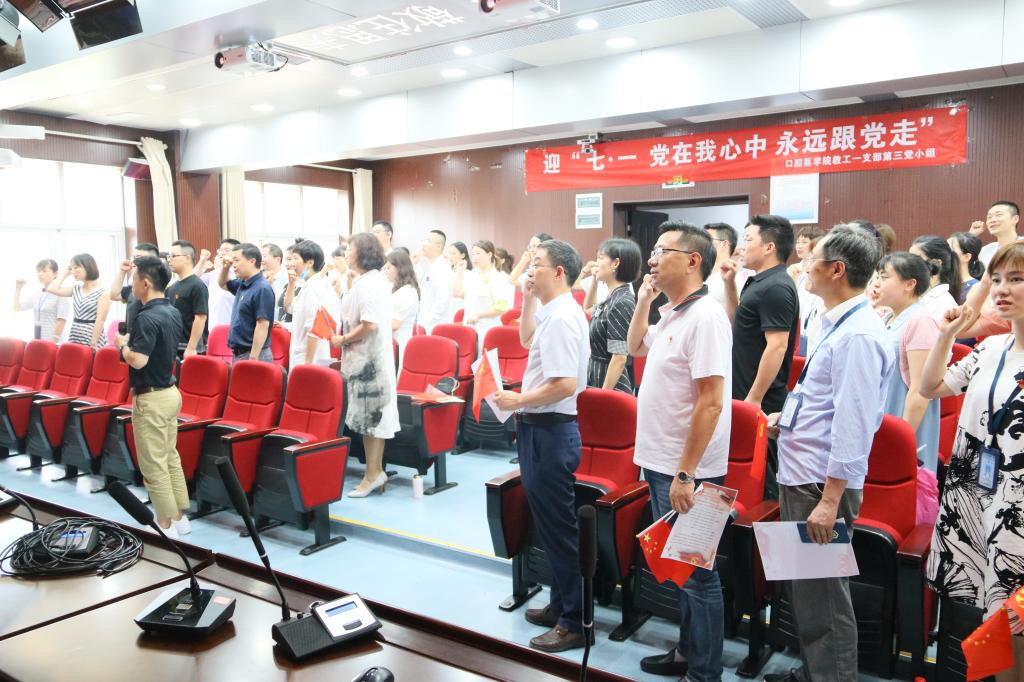 活动开始,教工第一党支部书记周天带领与会人员重温入党誓词,党员杨萌、喻勇、杨亚,发展对象韦小超、黄丝雨、邱家娴依次做思想交流汇报,让大家再次回顾个人入党的初心,感受中国共产党人的坚定信念与意识。无论是工作还是学习,每个人都应时刻不忘党的教诲,时刻牢记党的宗旨,并始终将其贯穿自己行动的始终。