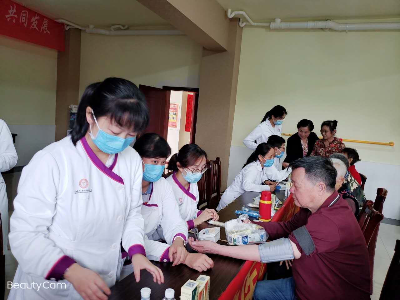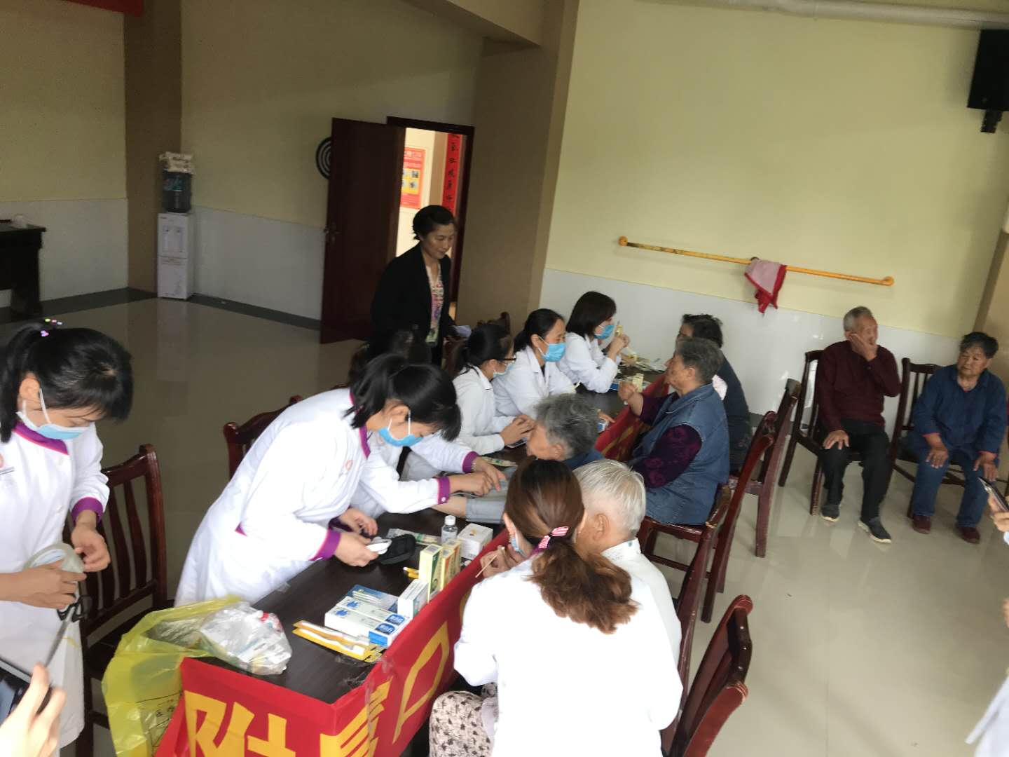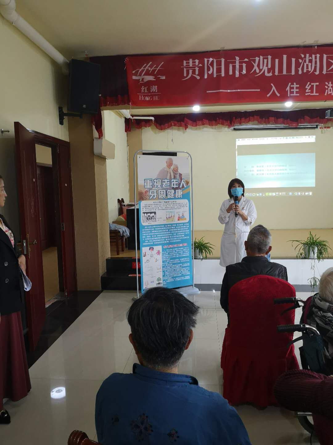 义诊开始前,党支部书记蔡扬及党员王珣通过视频展示及现场讲解的方式,为老年人科普了牙齿的护理方法,例如巴氏刷牙法,牙线及牙缝刷的正确使用方法等,并对老年人常见口腔疾病、义齿保养及拔牙的相关禁忌症进行了讲解,针对老年人的口腔特点制定了具有个人特色的口腔卫生指导。义诊现场,医护人员为老年人进行免费的口腔健康咨询及检查,进行血压、血糖等项目的检测,并送出20多份护牙礼品,让老年服务中心的老年人足不出户就能享受到专业的口腔检测及诊疗服务。