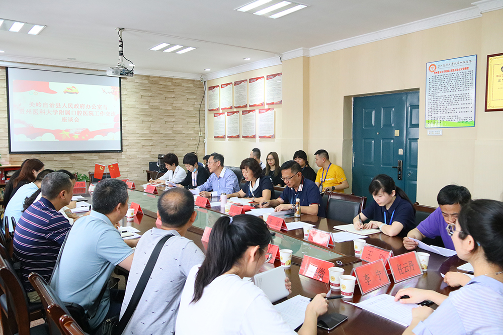 上午11点,座谈会在北校区行政楼五楼会议室召开,关岭县人民政府副县长万江、卫健局局长左俊,县人民医院副经理李益、医务科副科长雷波、护理部主任胡跃芬、口腔科主任罗昌雄、花江镇卫生院经理陈显桂、安顺市人民医院口腔科医生任云丹、李宁和县政府的工作人员郑伟微,以及公司党委书记张军梅、经理马洪、副经理王永出席会议;公司各临床医技科室、各行政职能部门主要负责人及部分脱贫攻坚工作组成员参加会议。会议由副经理王永主持。