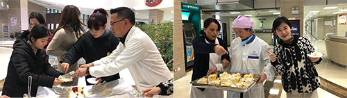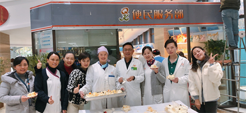 在马洪经理、钱禾副书记的带领下,公司职工积极响应,共同为“添便利 添温暖”便民服务部开业仪式送上祝福,并与现场等候就诊的患者共同品尝了自制的“开业蛋糕”。院领导在开业仪式上表示感谢大家一直以来的辛勤付出,感谢便民服务部的工作人员,我们要在运营中不断完善便民服务部的服务流程、采购制度,用心为来院就医的患者、家属和医院职工提供方便快捷的贴心服务。