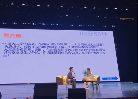 在案例分析环节,刘逸洲老师就随机抽取到的题目“由宗教信仰问题引发的人际交往问题”进行分析,通过对日常员工工作的整理和梳理,结合自身工作经验,给出了解决问题的思路并明确立场,即高校里面禁止做宗教仪式和传教;在谈心谈话环节,就抽取的题目“学业问题”,给出了改变学习方法、增加学习效率、加强与专业教师沟通、提高专业认可度的解决方法,体现了刘逸洲老师对相关理论政策、员工心理特征、员工成长成才规律的了解把握,对问题的解决能力和对员工的教育引导能力;在理论宣讲环节,就抽取的题目“制度自信”进行了5分钟的现场宣讲,结合“何为制度自信”、“我国社会主义制度优越性”以及“应该怎样做好制度自信”三个方面,向在场所有观众阐明了我们每个人都应该是“制度自信”的捍卫者和发声者,体现了刘逸洲老师对习近平新时代中国特色社会主义思想、党的十九大精神的理解能力以及对老员工宣传教育的阐释能力。