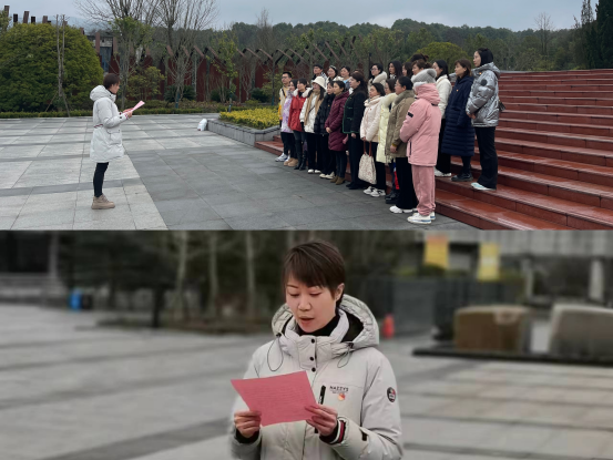 在息烽集中营革命历史纪念馆广场前,刘洪静带领党员同志们重温入党誓词。高举右手、庄严宣誓,铮铮誓言、高昂气势久久回荡在党旗前、广场上。刘洪静表示,红色血脉是中国共产党政治本色的集中体现,是新时代中国共产党人的精神力量源泉,我们要从缅怀的历史中、从红色基因中汲取强大信仰力量,增强“四个意识”,坚定“四个自信”,做到“两个维护”,继承和发扬老一辈革命家谦虚谨慎、不骄不躁、艰苦奋斗的优良作风,脚踏实地干好本职工作,像钢铁一般团结,为贵医口腔高质量发展贡献力量。
