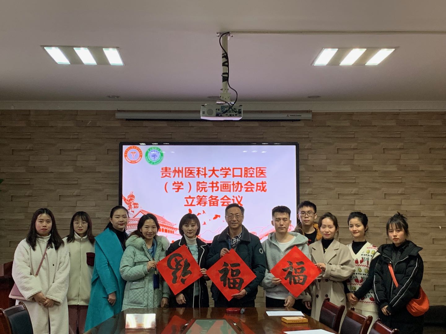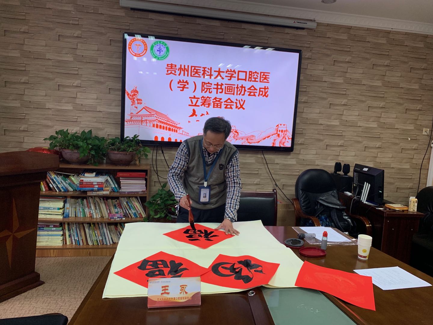 会上,大家就书画协会的建设与发展做出讨论,集思广益,建言献策,会场气氛热烈。副经理王永及本次会议的书画爱好者现场挥毫泼墨,为响应号召就地过年的师生送上新春祝福。