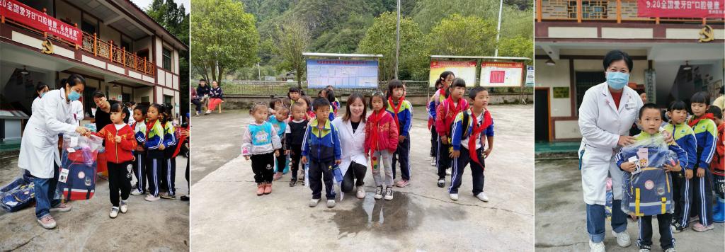 本次活动开展前期,医院曾与新堡布依族乡陇脚村村委会提前对接、周密筹划。当天活动进行了三个多小时,义诊人数一百余人。在开展义诊的同时,还向当地孩子们捐赠了书包、水杯、手环,向义诊群众发放了牙刷、牙膏等小礼品。活动中,教工七、八支部党员同志们体现了良好的先锋形象,在发挥模范先锋作用的同时扩大了医院的影响力!“口腔健康、全身健康”,在“关爱贫困儿童,关注贫困群众”“传播口腔健康知识、做好口腔科普宣教”方面,贵医口腔一直在路上。