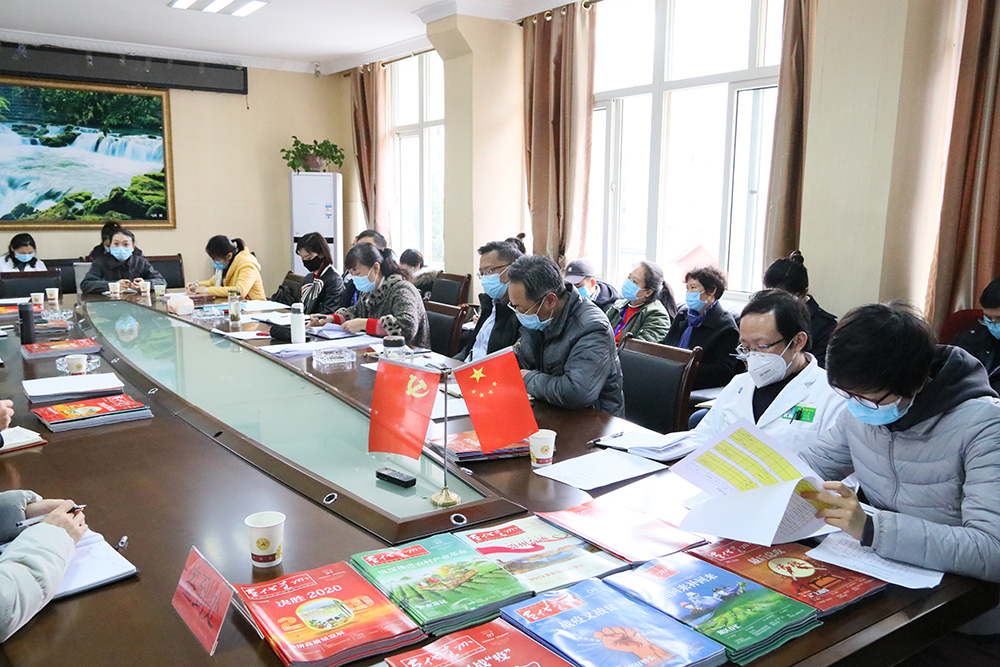 会上,张军梅书记首先传达了卫健委视频会议中关于习近平《全力以赴应对好这场大考》、《关于深入学习贯彻省委、省政府主要领导重要批示精神 进一步加强疫情防控为复工复产和脱贫攻坚作出新贡献的通知》(黔卫健党组〔2020〕21 号)、传达国家卫生健康委《日常门诊服务、住院服务绝不能一停了之、一关了之》、《中共贵州省卫生健康委党组关于认真学习贯彻习近平总书记重要讲话精神坚决落实中央和省委、省政府统筹推进新冠肺炎疫情防控和经济社会发展工作部署的实施意见》(黔卫健党组〔2020〕26号)及贯彻党的十九大、十九届四中全会、统筹推进新冠肺炎疫情防控和经济社会发展工作部署会议、决战决胜脱贫攻坚座谈会、全国卫生健康工作会议、省委十二届六次全会、省两会、全省统筹做好疫情防控和经济社会发展工作会议精神和省领导批示等讲话和文件精神,并共同学习了全省卫生健康系统统筹推进疫情防控、脱贫攻坚暨2020年度卫生健康工作视频会议的交流材料。