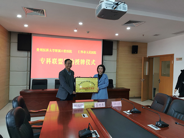 为认真贯彻落实省委、省政府和省卫健委医改精神、进一步深化公立医院改革,应仁怀市人民医院的邀请,12月11日,公司副经理王永、医务科主任王刚前往仁怀市人民医院进行专科联盟成员单位签约授牌仪式,参加授牌仪式和座谈会的有仁怀市卫健局党组书记林山,仁怀市人民医公司党委书记陈云端,经理罗太行,副经理张岚,医务科科长万召喜,口腔科主任何平及仁怀市人民医院口腔科全体医护人员。签约授牌座谈会由仁怀市人民医公司党委副书记、经理罗太行主持。