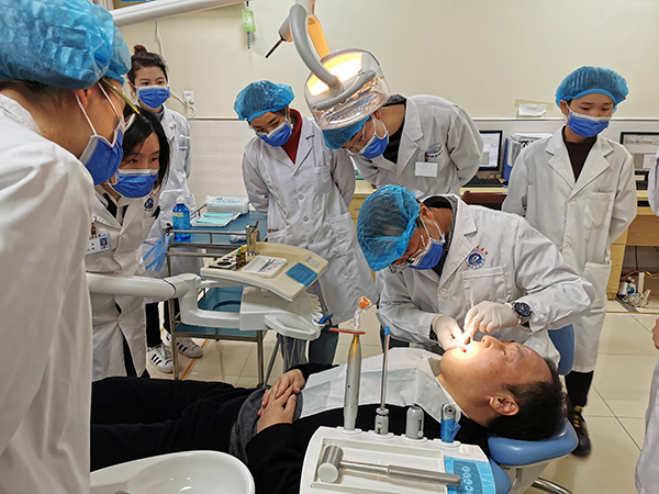 签约授牌和座谈会结束后,公司一行在仁怀市人民医院院领导的陪同下对口腔科门诊部进行实地考察,并对仁怀市人民医院口腔科的建设发展展开讨论。同时,诊治了两位患有口腔疾病的患者,得到了患者和现场口腔医护人员的一致称赞。