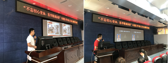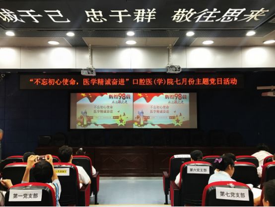 7月25日,口腔医(学)院在行政楼五楼学术报告厅开展了题为“不忘初心使命,医学精诚奋进”的主题党日活动。此次活动由第四教工党支部牵头,贾源源医生主持,全公司党支部共同参与。党委书记张军梅、经理马洪、副经理唐正龙走进支部同全公司党员共同学习。