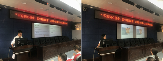 会上,各支部代表以不同角度和方式进行交流汇报,教工一支部周天、教工四支部蓝熙、研究生党支部李芳、本科生党支部袁丹萍、教工三支部王远达、教工七支部郭婷婷、教工六支部黄云骥、教工五支部杨桦、教工八支部杨晓春、教工二支部张婷,分别以《时代最强音》、《修复病例展示》、《上颌前牙区骨量不足型GBR+个性化基台美学修复1例》、《这个夏天,从“齿”开始》、《奔跑的骨头》、《专创融合项目开展情况》、《牙体牙髓科病例展示》、《隐形矫治在我科的开展情况暨病例汇报》、《手术患者术前访视新模式》、《营造良好党建氛围,助力党建工作新发展》为题展示近期的支部工作开展情况。