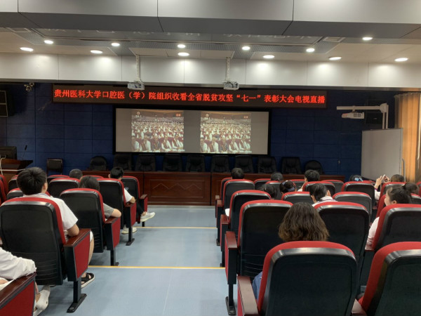 根据《关于召开全省脱贫攻坚“七•一”表彰大会的通知》(贵医党办发〔2019〕24 号)精神,7月1日,williamhill官网口腔医(学)院于行政楼五楼学术报告厅设立分会场组织收看全省脱贫攻坚“七•一”表彰大会电视直播。公司党政领导及党委委员,各临床、医技、行政部门负责人,教职工党员代表,员工党员代表共同观看。