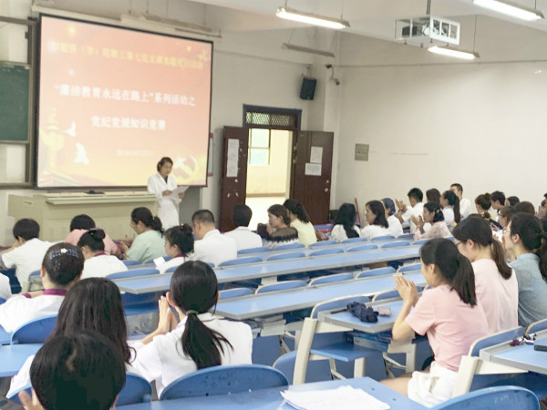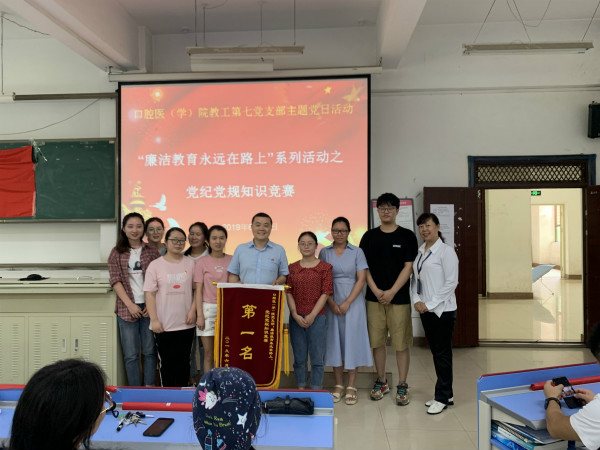 以习近平同志为核心的党中央对加强党风廉政建设和反腐斗争高度重视,采取了一系列强有力的措施,提出“把权力关在制度笼子,老虎苍蝇一起打”,彰显反腐败的强大决心。为进一步增强党员干部维护党规党纪的自觉性、坚定性,响应党中央对党风廉政建设和反腐斗争的高效措施,6月27日,由口腔医(学)院第七教工党支部牵头,全公司党支部参与,在北校区基础二号楼2201教室开展了“廉洁教育永远在路上”系列活动之党纪党规知识竞赛。党委书记张军梅、党委副书记钱禾走进支部活动同全公司党员共同参与竞赛。