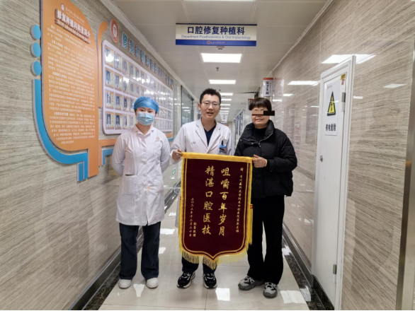 3月7日,口腔修复种植科主治医师蓝熙收到患者感谢锦旗一面。