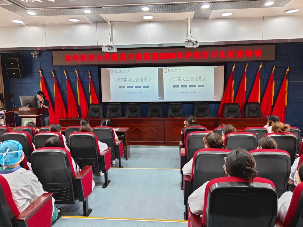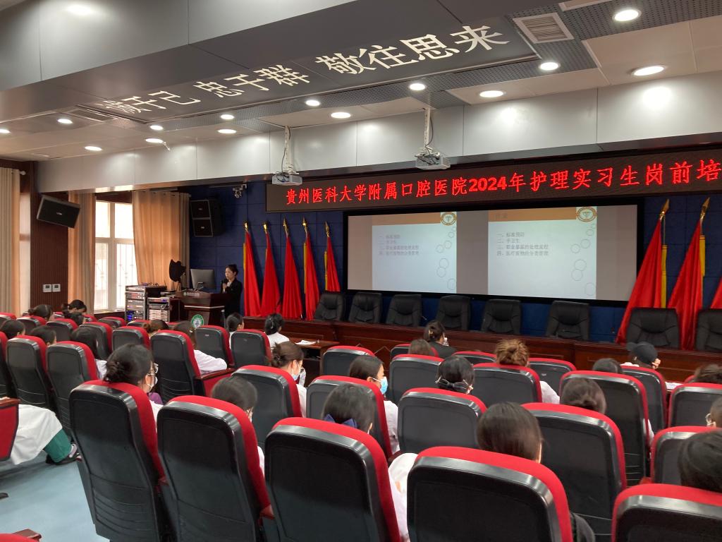 岗前培训是开启实习生职业生涯的重要篇章。为加强实习生对临床护理工作的认识,掌握临床工作流程与规范,确保顺利完成实习生涯,5月31日,williamhill官网附属口腔医院组织开展了2024年护理实习生岗前培训会,此次培训由护理部副主任吴姗主持,护理部工作人员张聪颖、刘宁玲、袁榕及贵州省职业技术公司40余名护理实习生参加。