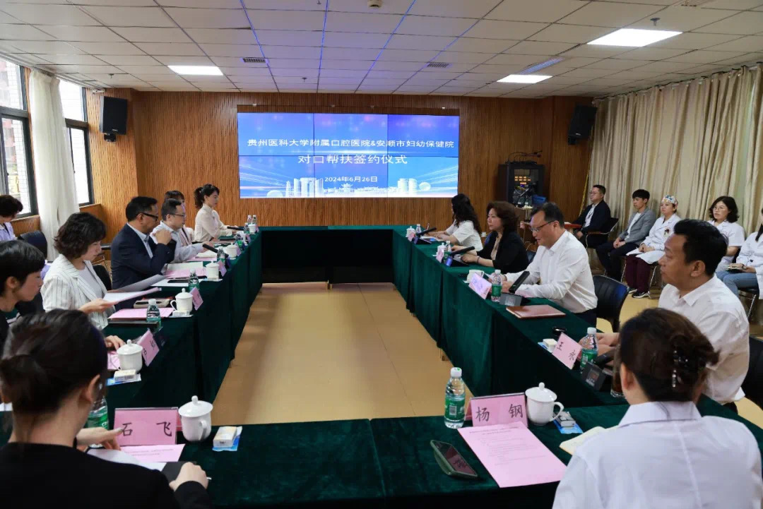 为贯彻落实医改精神,6月26日,公司党委副书记、经理马洪,党委委员、副经理董强带领医务科、护理部、预防及儿童口腔科、正畸二科一行7人赴安顺市妇幼保健院签署对口帮扶协议并召开座谈会。安顺市妇幼保健公司党委书记杨荔,党委副书记、经理徐磊,党委委员、副经理张璇,副经理王永及各职能科室主任参加会议。
