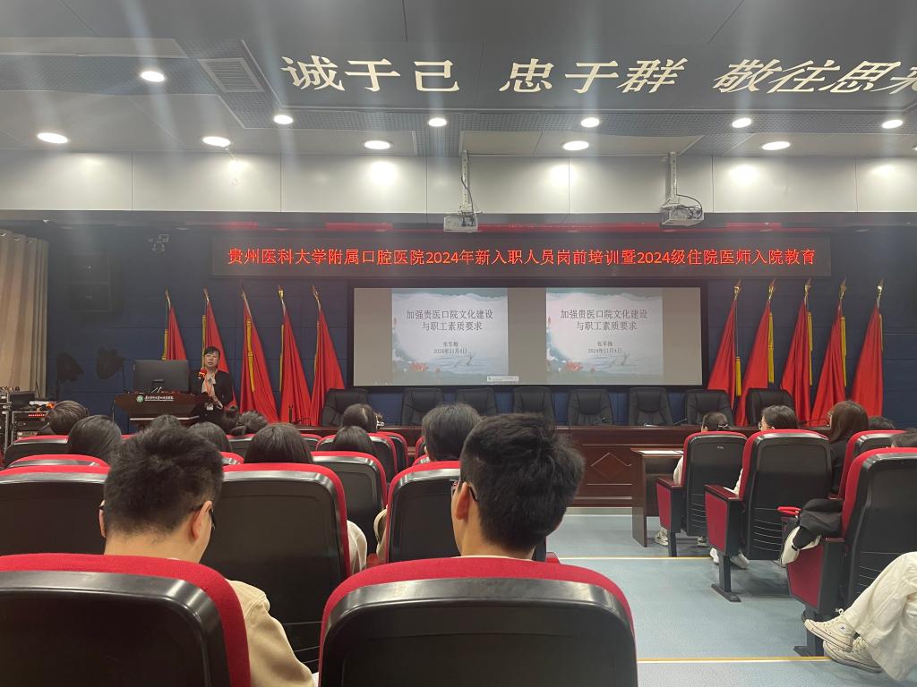 此次培训由党委书记张军梅主讲的“加强贵医口院文化建设与职工素质要求”拉开序幕,党委副书记、经理马洪介绍了“医院发展史”,各专业基地主任、科室负责人、职能部门负责人及骨干围绕科室(基地)情况、职业防护、病案管理、医疗质量安全核心制度、消防和信息安全管理、医保政策、处方权限和医疗行风教育、意识形态教育等内容开展培训。