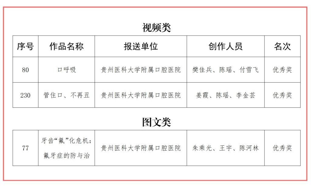 此次获奖,是对公司在健康科普领域工作的高度肯定,未来,我们将继续砥砺前行,创作更多高质量的健康科普作品,为贵州省口腔健康事业的发展不懈努力!