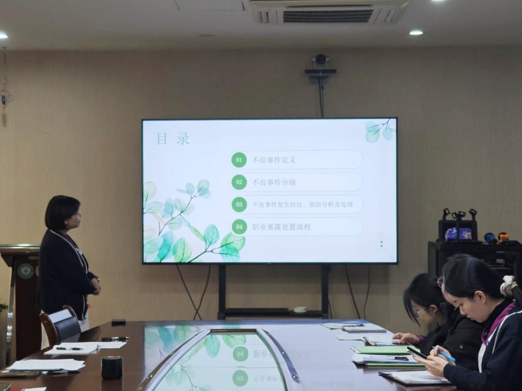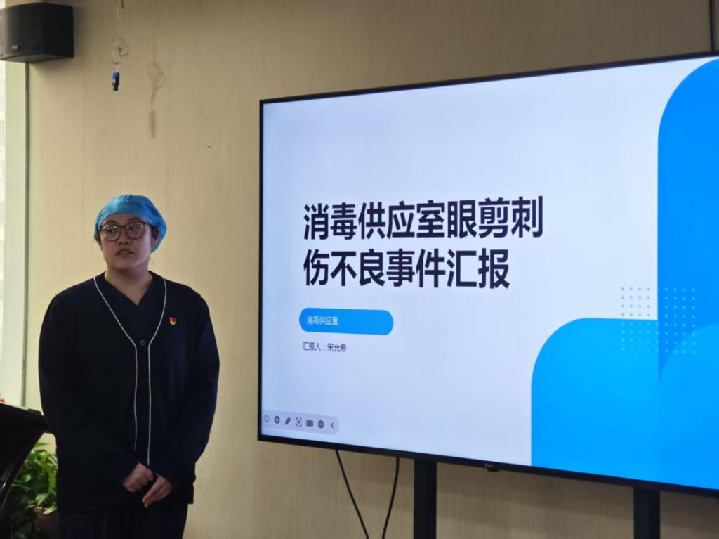 口腔颌面外科门诊护士长王海水、消毒供应室护理组长宋允希、口腔颌面外科护士蒋银作为代表对2024年本科室发生的不良事件进行汇报,深入剖析了不良事件发生的原因,通过案例分析让参会人员对不良事件的危害性和防范措施的重要性有了清晰的认识,同时提出了整改措施。
