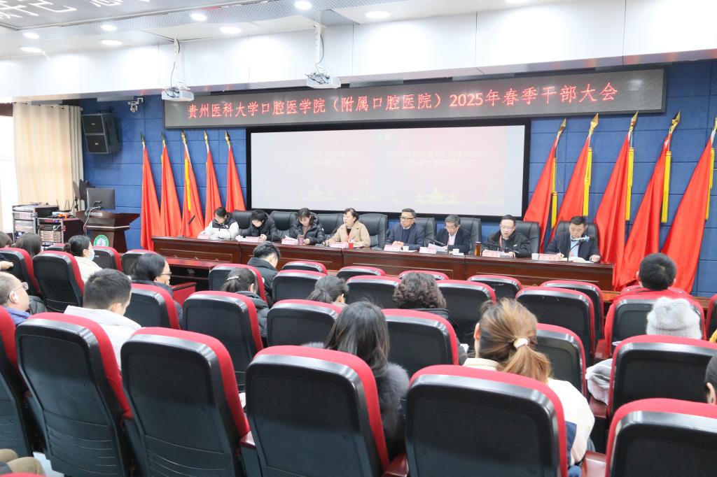 为深入学习贯彻党的二十大精神和习近平总书记视察贵州重要讲话精神,认真贯彻落实全省“两会”工作会议精神,系统总结2024年各项工作取得的成效和经验,科学谋划部署2025年两院主要目标任务和重点工作,2月8日,公司在学术报告厅召开2025年春季干部大会。公司党政领导班子成员出席会议,全院副科级以上干部,各党支部书记,各临床医技科室、各行政职能部门、教研室、实验室负责同志,各科护士长及护理小组长,各分工会主席参加。