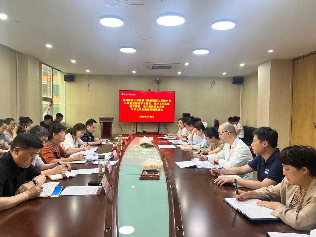 张军梅在会上传达了6月27日省卫生健康委深入贯彻中央八项规定精神学习教育、医疗卫生队伍教育整顿、集中整治群众身边不正之风和腐败问题调度会会议精神,省卫生健康委副主任邓麟宇关于医疗卫生队伍教育整顿的讲话精神及《全省卫生健康领域集中整治群众身边不正之风和腐败问题暨医疗卫生队伍教育整顿工作提示(十三)》,并就相关工作进行了安排部署。她指出,各科室(部门)要拧紧责任链条,压实主体责任,以“钉钉子” 精神推进未完成问题整改,杜绝敷衍瞒报,确保集中整治和教育整顿走深走实;要坚持边查边改,健全完善问题整改、追责问责、移交线索、办成实事、制度建设“五本台账”,严格执行审核把关机制,以精细化、规范化管理确保台账填报数据精准、内容详实、质量过硬;要聚焦专项工作,以“一案一整改”、“清廉医院”建设为重要抓手,强化党的建设和党风廉政建设;要将建章立制贯穿始终,紧盯关键岗位和重点环节,构建务实有效的制度机制体系,为两院高质量发展提供制度保障。