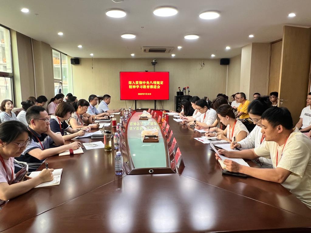 为落实深入贯彻中央八项规定精神学习教育工作要求,统筹推进各项任务,7月16日,公司在综合会议室召开深入贯彻中央八项规定精神学习教育推进会。公司党委书记张军梅主持会议,公司党政领导班子成员、副科级以上干部,学习教育专班全体成员,各临床、医技科室核心组成员参加。