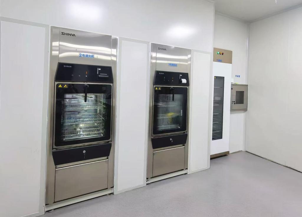 科室配备1.2方脉动真空蒸汽灭菌器2台、650L脉动真空蒸汽灭菌器2台、60L过氧化氢低温等离子灭菌器1台、24L脉动真空蒸汽灭菌器3台、全自动清洗消毒器4台、超声清洗机3台、牙科手机自动清洗机2台、牙科手机注油养护机7台、医用干燥柜2台及高压水枪、高压气枪、水处理设备、酸水生成装置、封口机、切割机、新风净化系统等清洗、消毒、灭菌设施设备。