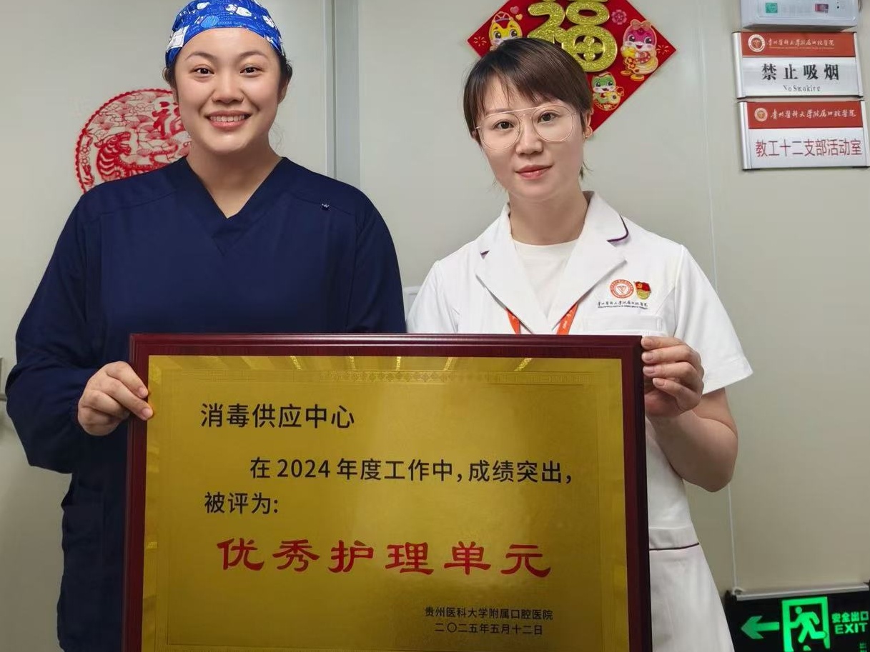 消毒供应中心始终本着“以临床需求为中心”的服务宗旨,落实优质护理服务措施,持续为临床提供优质、高效、便捷的消毒、灭菌物品供应服务。他们肩负着全院可复用器械的“回收-分类-清洗-消毒-干燥-检查保养-包装-灭菌-储存-发放”十大工作流程,每一道工序都倾注着他们的细心、耐心与责任心。从临床及手术室使用后的污染器械,到被放心安全地送到临床供医生使用,每件器械都在消毒供应中心历经至少4小时的严格处理,全年平均处理复用器械约80万件。从器械回收时的严谨分类,到灭菌灯下的执着坚守,消毒供应中心护理团队用专业与温度,诠释着新时代护理工作的深刻内涵。去年,该团队荣获贵医口腔2024年度“优秀护理单元”。
