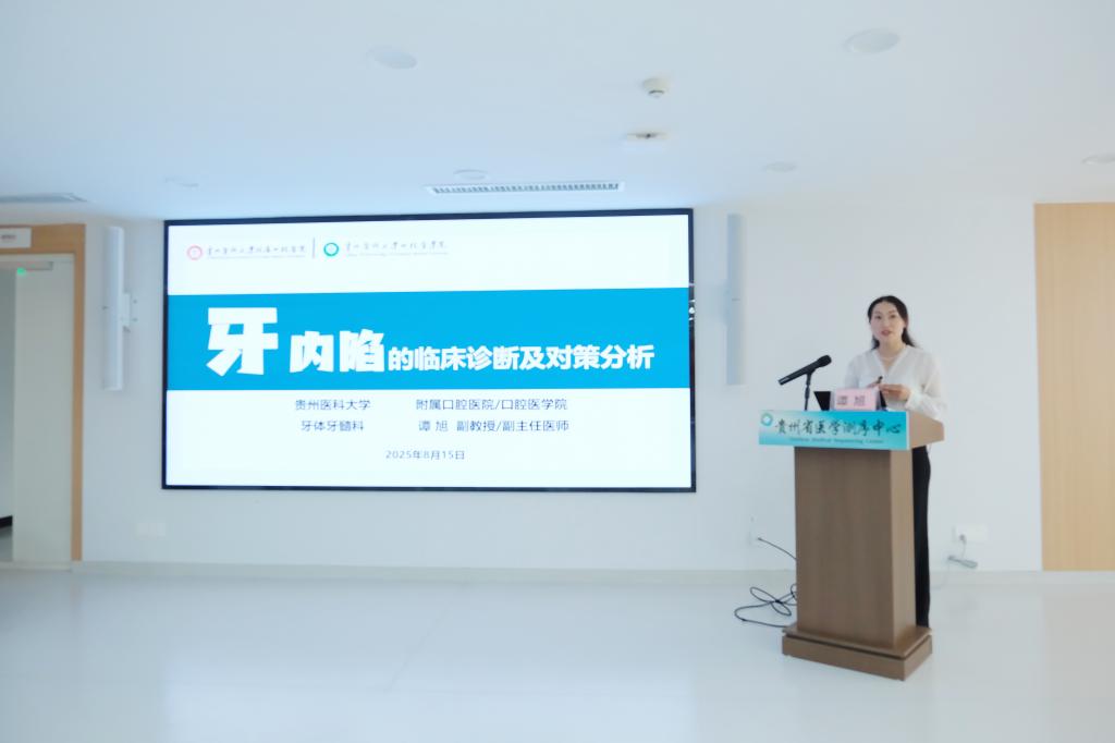 公司牙体牙髓病科主任谭旭、副主任袁媛园及副主任医师叶韵瑶分别就临床热点问题进行了精彩分享。谭旭以“牙内陷的临床诊断和对策分析”为题,系统梳理了此类疑难病例的诊断思路和治疗策略,为临床工作提供实用参考;袁媛园在“成熟恒牙龋源性露髓的临床诊疗策略”讲解中提出了创新性的治疗方案;叶韵瑶则通过“单尖法充填的临床实践”这一主题,为大家展示了相关规范化操作的技术要点。