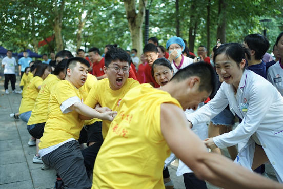 本次比赛共设立6支参赛队伍,其中教职工5队,员工1队。现场拉拉队的加油助威声响彻云霄,参赛运动员们鼓足劲涨红脸,使绳索标记在决胜区来回移动,场面十分热烈。经过激烈角逐,最终口腔颌面外科、手术室和麻醉科组成的口外系统队伍蝉联冠军,检验科、B超室、药剂科、病理科、消毒供应中心以及影像科组成的医技队伍荣获亚军,牙体牙髓病科、牙周黏膜科、预防及儿童口腔科以及综合急诊科组成的口内系统队伍荣获季军。