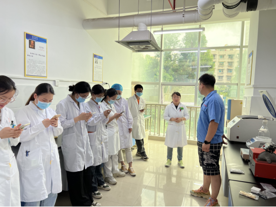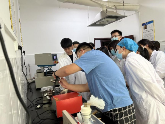 培训会上,刘洋从实验的注意事项、实验样品制备、实验仪器使用和实验结果记录等多个方面进行讲解。指出使用仪器时的不当操作可能会对实验造成影响,要求同学们在实验样品制备时时刻谨记注意事项,并亲自演示了拿样品和将样品放入仪器的姿势。同学们在观察仪器和实验过程后,均表示对该仪器有了更为清晰的认识,进一步激发了同学们对科研的兴趣。