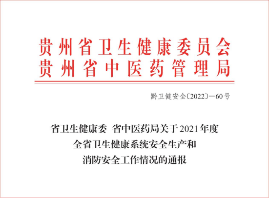 近日,省卫生健康委、省中医药局发布了关于2021年度全省卫生健康系统安全生产和消防安全工作情况的通报,公司荣获全省医疗卫生机构安全生产和消防安全先进集体,设备后勤管理科杨标荣获全省医疗卫生机构安全生产和消防安全先进个人。