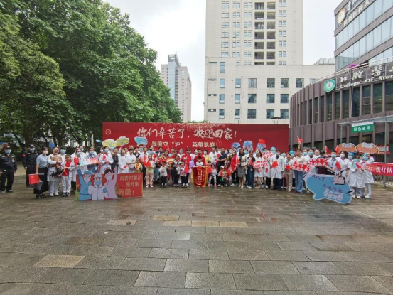 医院门前,医公司党政领导班子及党委委员、全院副科级以上干部以及职工代表翘首以盼,用热烈的掌声和欢呼声共同欢迎他们凯旋!院领导送上关心和慰问,感谢援沪医疗队员们用拼搏、奉献的抗疫精神,为上海筑起了疫情防控的安全堡垒,用温暖有力的口院担当,交出了阶段性战“疫”的满意答卷。