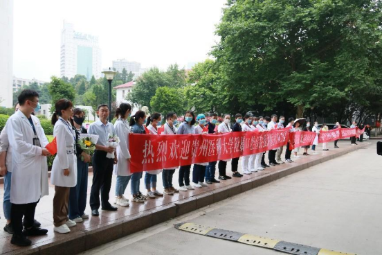 按照疫情防控要求,6月9日下午援沪医疗队结束隔离。当天,贵州省卫生健康委员会为他们举办了简短而温馨的欢送仪式,williamhill官网附属口腔医公司党委书记张军梅,党委副书记、经理马洪带领相关科室负责人及职工代表一起前往隔离酒店迎接援沪医疗队队员,并向为疫情防控付出努力和做出贡献的援沪队员们致以崇高的敬意和衷心的感谢。