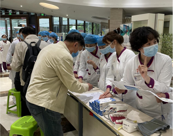 在2022年第111个“5・12”国际护士节来临之际,为深入贯彻习近平总书记“科技创新、科学普及是实现创新发展的两翼,要把科学普及放在与科技创新同等重要的位置”指示精神,积极响应中华护理学会、贵州省护理学会关于开展“护理科普活动周”的通知要求,进一步激励公司护理人员“红心向党行,立足岗位作贡献,奋进新征程”,5月11日上午,公司护理部组织全院南丁格尔志愿者服务队护理人员,联合贵阳市科技局、工商银行及全院各教工党支部,在医院二楼候诊大厅开展了以“科普促健康 携手向未来——安全护航 健康生活”为题的口腔护理科普活动。