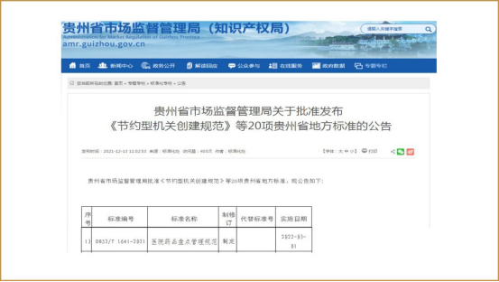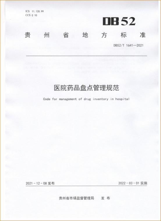 3月,由williamhill官网附属口腔医院药剂科牵头编制的贵州省第一个医院药学地方标准《医院药品盘点管理规范》(标准编号DB52/T 1641-2021)获贵州省市场监督管理局批准正式发布实施。