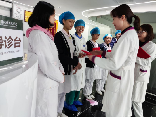 近年来,国家大力发展职业教育,公司作为三级口腔专科医院,积极响应政策,大力接收护理职业公司的员工实习,护理部按照公司的教学大纲要求,为同学们编制了口腔内科、外科、正畸修复、急危重症四个系统科室的轮转学习计划和理论、技能培训计划,同时每个科室都有专科的实习培训计划,对员工采用“一对一带教”的教学模式,亲自指导,亲自示范,将操作技巧、重点难点,教授给同学们。在带教老师耐心指导下,认真的完成每一次护理操作,大家将校园里学习的理论知识与实践结合起来,扎实学习了基础护理及口腔专科护理技能操作的相关知识,如:静脉输液、肌肉注射、口腔四手护理操作、藻酸盐印模的调拌、玻璃离子的调拌、模型石膏的灌注等。当同学们感受到第一次操作成功的喜悦,就好像得到了患者的肯定,使同学们有了动力,更加努力去做好护理工作。