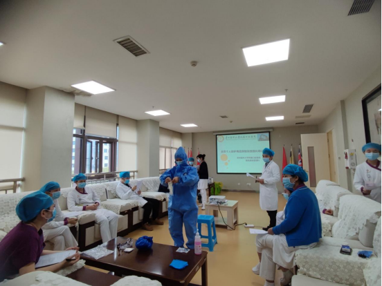 为切实做好新冠肺炎疫情常态化防控工作,10月25日至31日,公司通过线上线下相结合的方式组织全院开展了个人防护用品技能操作强化培训与考核。此次培训由医院感染科组织实施,全院质控员配合完成,各临床医技科室医护人员、各行政职能部门职工、全院实习生、规培生、进修生以及绿地保洁、保安人员全覆盖。一方面充分调动各科室院感联络员,利用质控工作微信群传达培训视频资料,供联络员组织各科室进行学习;一方面组织保洁、保安开展线下授课,通过现场示范与指导,切实确保工勤人员个人防护到位。