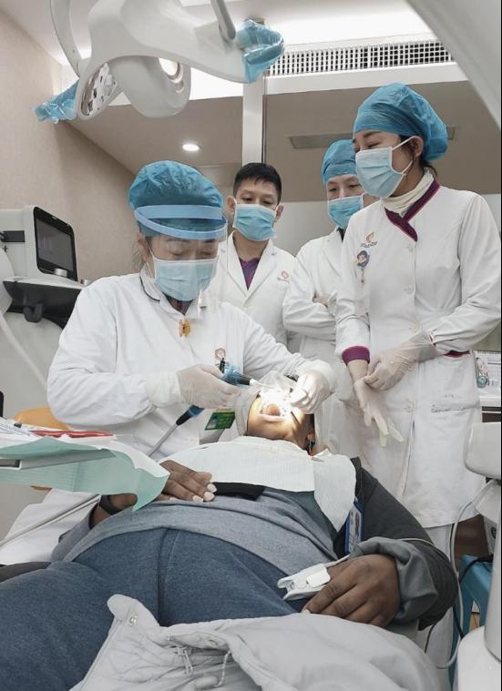 患者经过梁燕主任的全面检查,决定联同麻醉科的田强主任和口腔颌面外科的王宇博士采取MDT诊疗模式对患者进行治疗。在此期间,梁燕主任安排了牙体牙髓科护士杨俊瑶全程陪同直到治疗结束。诊疗结束后,患者不断感慨公司医生精湛的医术和耐心的服务,很感谢每一个帮助她的科室。
