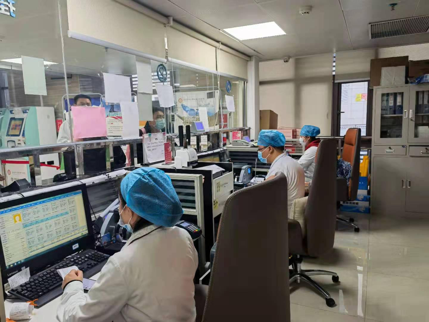 由于窗口工作的特殊性,收费人员必须全年无休坚守岗位!全年365天、全天24小时确保门诊患者、出入院患者能及时办理相关业务,保障医院第一道工作流程的正常开展。无论寒来暑往,还是在疫情突发的特殊时期,收费处永远有他们忙碌的身影和温暖的笑颜。