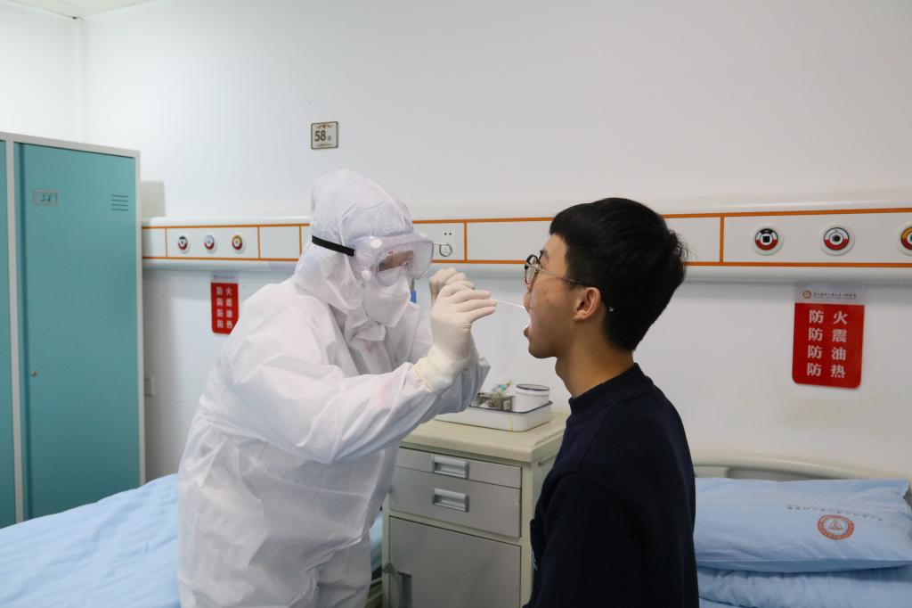 第一个项目“口腔颌面外科病房患者发热处置流程”。口腔颌面外科值班护士使用体温枪监测患者体温时发现患者体温37.7℃ ,再次询问病史后发现患者有隐瞒流行病学史情况,6天前患者曾到过有病例报告社区的旅居史。(患者入院核酸检测阴性)。值班护士立即在该病房内按呼叫铃报告护士长并就地隔离,随后科室应急组织成员在科主任吴亚东的领导下,科室医疗救治组成员、疫情监测及流调报告组成员、后勤保障成员、消毒隔离成员等各组成员紧密配合,完成该患者的转床、按规划好的路线行CT检查、病房内核酸采样等具体事项。