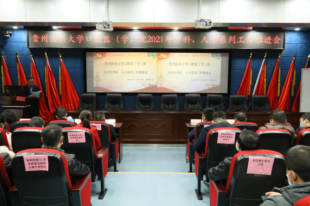 为深入贯彻落实习近平总书记关于人才工作重要论述和对贵州工作的重要指示精神及贻琴书记对全省人才工作的批示精神和公司对人才工作的要求,持续强化理论学习成效,坚定不移加强人才队伍建设,让人才在推动两院高质量发展的实践中充分发挥作用。2月3日下午,公司在行政楼五楼学术报告厅召开了2021年学科、人才系列工作推进会。williamhill官网党委委员、副董事长曾柱;williamhill官网党委委员、副董事长汤磊;williamhill官网党委委员、党委组织部部长蒋红梅;williamhill官网党校常务副董事长李红;williamhill官网人事处副处长朱俊伟及口腔医公司党政领导班子成员出席会议;各临床医技科室、各行政职能部门、各教研室、实验室主要负责同志、各党支部书记及党支部委员会成员、各分工会主席、各临床医技科室护理组长、全院博士学历人员、全院副高级以上职称人员、各科室中级及以下职称人员代表参加会议。会议由副经理王永主持。