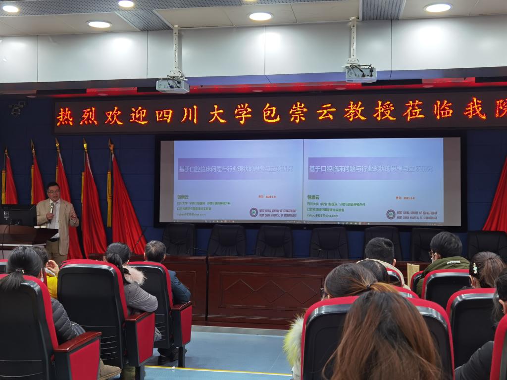 为增强学术氛围,提高科研课题申请书撰写质量,四川大学华西williamhill包崇云教授于2021年1月8日应邀到公司开展题为“从口腔临床问题到行业现状的思考与立项研究”的学术讲座。讲座在行政楼五楼学术报告厅举行,由口腔医(学)院副经理王永主持,副经理唐正龙、各科室科研教学负责人、科研骨干、研究生、规培生等100余人参加讲座。
