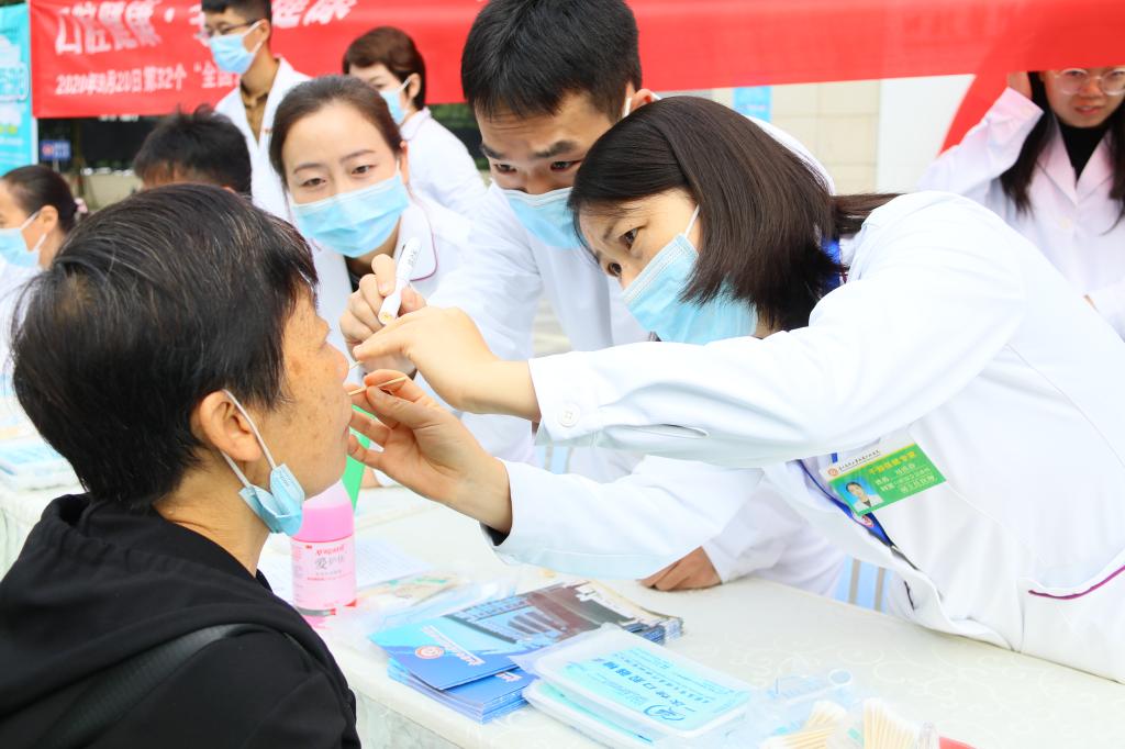 主场地义诊活动在开幕式礼炮声中正式开始。现场,前来咨询问诊的市民络绎不绝,医护人员耐心为每一位市民进行口腔检查、血压测量和现场可操作的口腔诊疗,并为其科普口腔疾病的日常防治要点,回答大家关于口腔健康的各种疑问,告诫大家对于口腔疾病“防大于治”,要养成良好的口腔卫生习惯,发现问题尽早到正规医院诊疗。现场还准备了精美实用的口腔科普图册、口腔清洁用品、儿童画本、医院简介宣传册等礼品包,赠送给支持口腔医院发展建设、重视口腔保健的市民朋友。据统计,此次公益义诊共为200余位市民做了科普宣教,共为百余位市民做了口腔检查,共送出礼品包200余份。