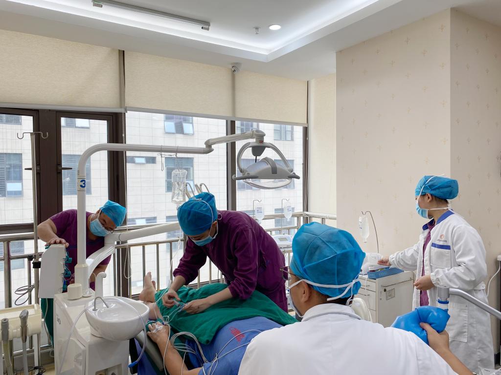 8月7日,麻醉科、手术室与修复种植科共同完成了院内首例“舒适化诊疗条件下美学区重度垂直向骨缺损种植手术”。该手术在麻醉科主任田强的大力支持下,在修复种植科主任董强手术团队、 麻醉科医师黄时富和张凯强、手术室护士张婉琛等医护人员的协同配合下开展,手术顺利完成,患者恢复情况良好,自行步出恢复室。