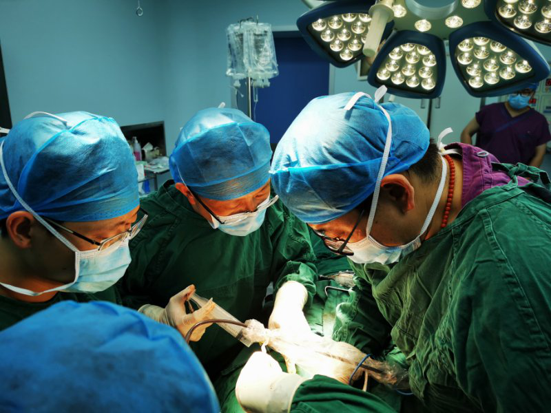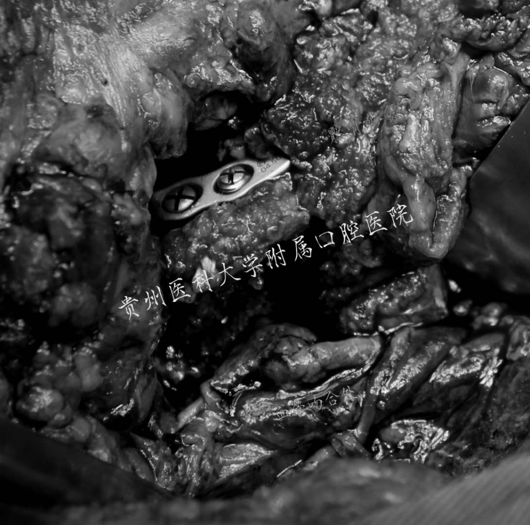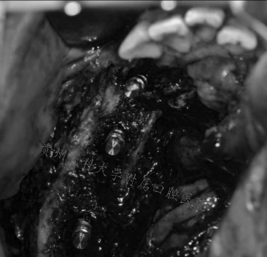 此次手术由口腔颌面外科修复重建刘睿主任团队联合口腔修复科董强主任团队共同操刀,历时一天,成功完成了迄今为止贵州省首例数字化外科技术引导下行“下颌骨肿物扩大切除术+游离血管化髂骨肌瓣切取移植术+面部微小动静脉吻合术+同期种植体植入术”。