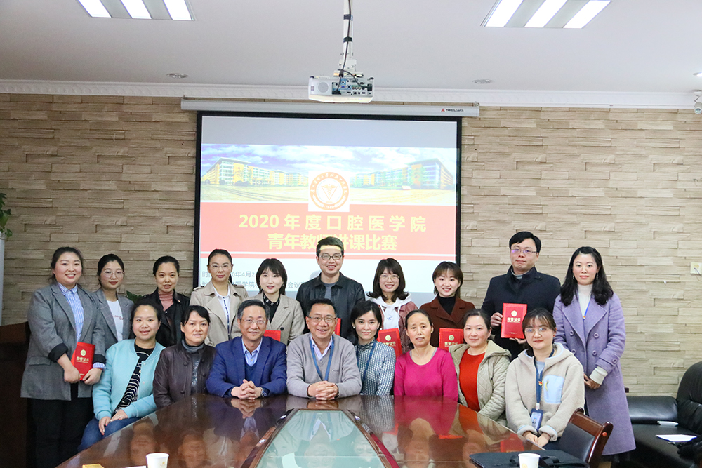 最终,口腔颌面外科学教研室周可获得本次讲课比赛一等奖,将代表公司参加公司的青年教师讲课评比;牙周黏膜病学教研室王亚静、牙体牙髓病学教研室代芸洁获得二等奖;口腔修复学教研室黄丞蔚、牙周黏膜病学教研室王珣、口腔正畸学教研室邹贤玉获得三等奖;儿童口腔及预防医学教研室黄明娜、牙周黏膜病学教研室罗亮、口腔医学教研室陈娇获优秀奖。与会领导和评委老师们为获奖教师颁发了奖状。