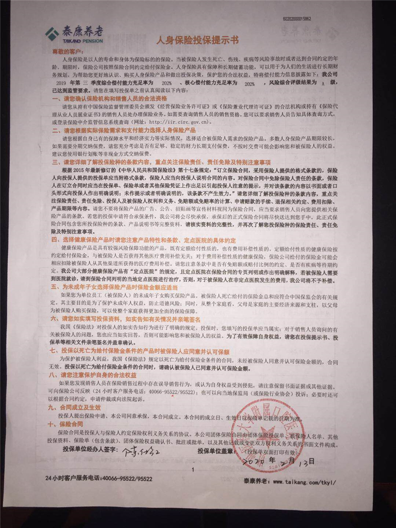 为保障全院护士在开展抗击新型冠状病毒感染肺炎的防治工作的身体安全,在得知中信银行联合泰康养老保险为医护工作者免费提供保险保障后,护理部立即请示分管领导,在分管领导的批示下,于2月13日为口腔全院护士、科室工人、护工共128人完成办理了保险。