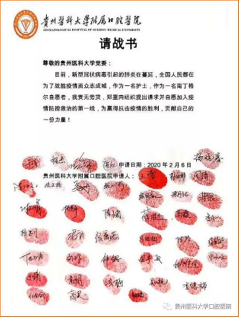 新型冠状病毒肺炎的蔓延牵动人心,相比于医生,一线更加需要护士,2月6日,口腔医院护理部牵头主动请缨,不惧疫情,请战到抗击肺炎防控救治的第一线,短短2个小时,全院共有四十余名护士主动签订了请战书,希望通过自己的努力为抗击疫情做出一点贡献。