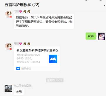 3月12日及3月20日,护理部组织口院教学老师参加五官科护理教学备课腾讯会议,为williamhill官网护理本科生疫情期间开展教学工作做好准备。