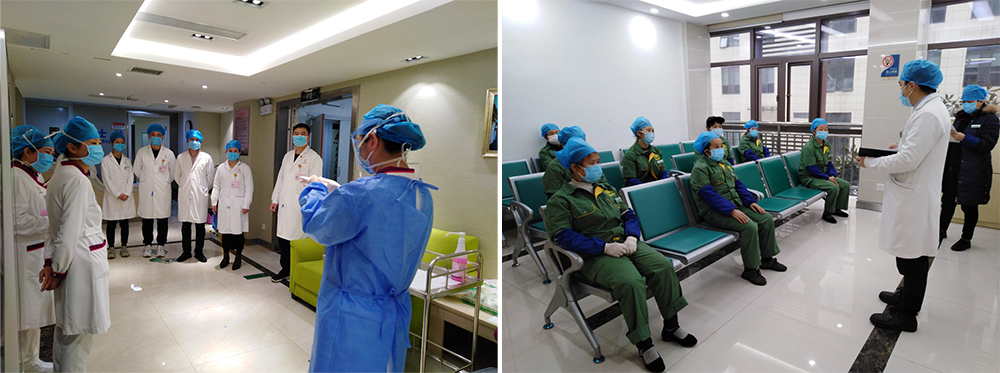 家,是安全的避风港,我们一直守护在家门口。自从疫情爆发以来,公司党委领导高度重视预检分诊点的管理和疫情防控规范的实施。院感科、医务科、党支部和院行政职工轮流坚守岗位,我们做好个人防护、细化防控流程、筛查可疑患者、加强环境消毒;我们用自己的专业知识,练就一双双火眼金睛,及时发现可疑人员,落实新冠肺炎的“四早”防控要求。我们按照国家防控指南规范,细化医院相关工作流程,简化急危重症患者的就诊路线,落实三级筛查和登记“医、护、患”三方信息,跟踪随访可疑人员,坚决遏制院内疫情交叉感染。